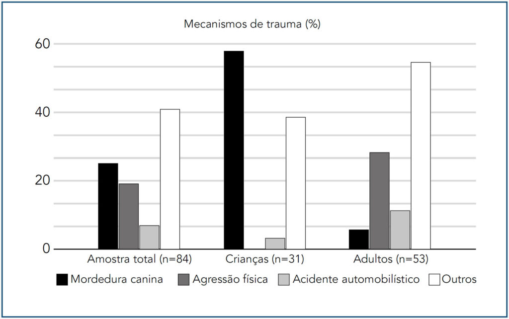 Foram selecionados 84 pacientes, 28 compareceram para avaliação presencial. O sucesso anatômico foi obtido em 64,3%, e o funcional em 60,71% dos casos. A idade esteve associada ao mecanismo do trauma.