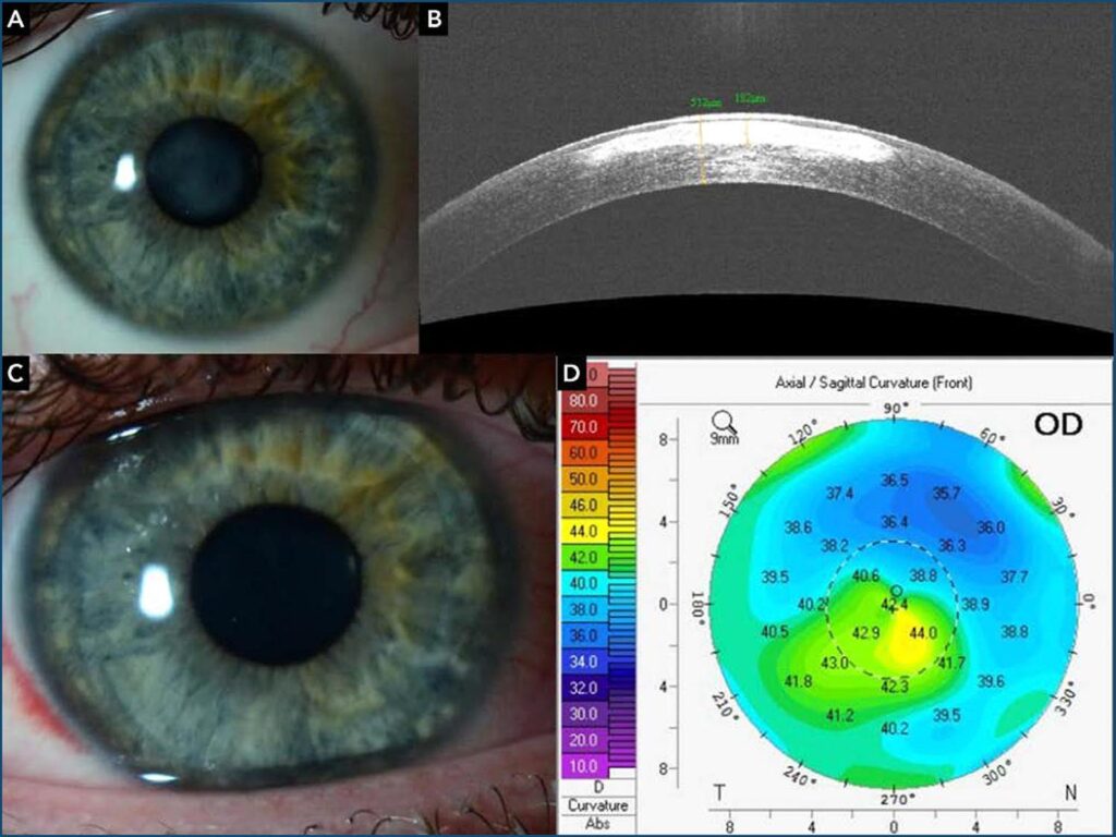 Embora a ceratoplastia lamelar anterior assistida por laser de femtossegundo ofereça uma opção de tratamento menos invasiva em comparação com a ceratoplastia penetrante, o manejo intra e pós-operatório pode ser complexo. A ceratoplastia lamelar anterior assistida por laser de femtossegundo em pacientes com história de ceratoplastia endotelial anterior ou comorbidades oculares correntes deve ser avaliada com cautela.