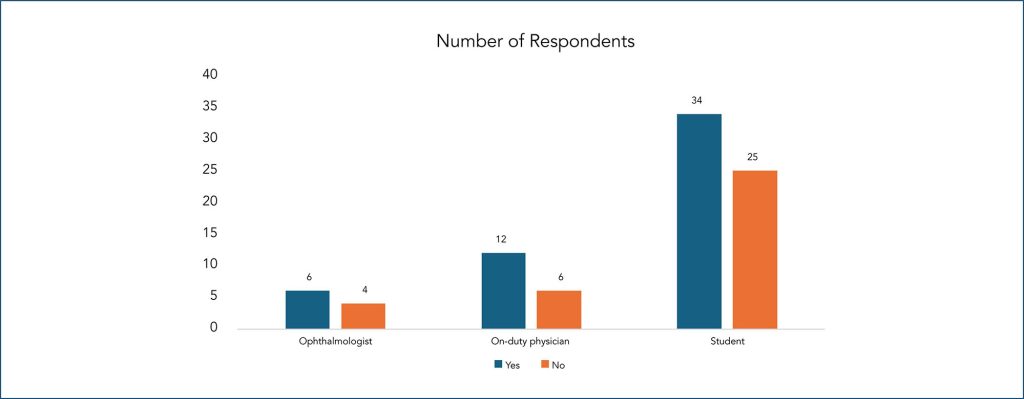 O total de participantes foi de 87, sendo 18 médicos plantonistas generalistas, 59 estudantes de medicina e 10 oftalmologistas. Foram utilizados três distintos questionários. Consideraram bom o conhecimento adquirido sobre retirada de corpo estranho extraocular 11,11% dos médicos plantonistas e 3,39% dos estudantes. A maioria dos plantonistas (58,82%) e dos estudantes (76,27%) não se considerava apta para o procedimento. Entre os oftalmologistas, 90% consideraram que a retirada de corpo estranho não deve ser realizada por não oftalmologistas.