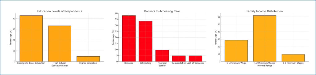 A maioria dos pais (85,7%) relatou acompanhamento pediátrico regular para seus filhos, significativamente associado a encaminhamentos mais precoces ao oftalmologista (p < 0,001). Os pais iniciaram 47,6% das consultas devido a preocupações próprias, enquanto os pediatras motivaram 23,8%. Disparidades socioeconômicas surgiram como barreiras principais, com famílias com renda entre 1 e 2 salários mínimos representando 61,9% dos participantes. Dificuldades no transporte (38,1%) e conflitos de horário (33,3%) foram identificados como barreiras significativas em comparação a outras. A adesão à terapia de oclusão foi difícil para 66,7% dos pais, principalmente devido à resistência da criança (47,1%). Iniciativas educacionais, especialmente em populações desfavorecidas, foram identificadas como essenciais para melhorar a conscientização e a adesão.