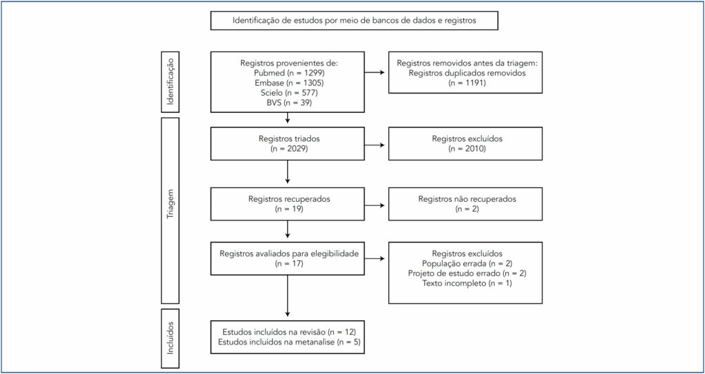 Foi realizada uma busca nas bases de dados MEDLINE/PubMed®, Embase, SciELO e BVS, e a extração de dados para essa revisão abrangeu o período até março de 2023, utilizando termos MeSH e operadores booleanos. A estratégia e os métodos de busca selecionados foram registrados na base de dados PROSPERO (#CRD42023403901).