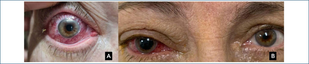 A trombose de seio cavernoso e veia oftálmica superior é uma condição clínica rara e pouco descrita na literatura. A apresentação clínica é inespecífica e altamente variável. Os sintomas podem incluir olho vermelho, oftalmoplegia, coma e morte. A etiologia principal resulta da infecção dos seios paranasais. O diagnóstico final deve ser efetuado por meio de exames de imagem, como ressonância magnética. Descrevemos um caso de trombose de seio cavernoso e veia oftálmica superior após COVID-19 em paciente de 64 anos e com quadro de hiperemia ocular persistente e dor à movimentação ocular. Ao exame oftalmológico, observou-se acuidade visual preservada, hiperemia conjuntival, dilatação de vasos episclerais e tortuosidade vascular retiniana em olho direito. A ressonância confirmou o diagnóstico. A associação com a COVID-19 foi levantada, excluindo-se demais causas infecciosas. Prescrevemos enoxaparina e varfarina, com melhora do quadro clínico ocular e manutenção da acuidade visual inicial após 12 meses de acompanhamento.