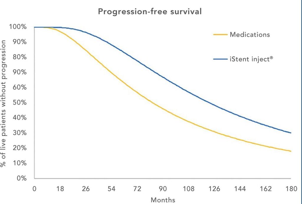 This analysis showed that iStent inject®, when used after the failure of the first-line therapy, is able to reduce the rate of glaucoma progression at an acceptable cost.