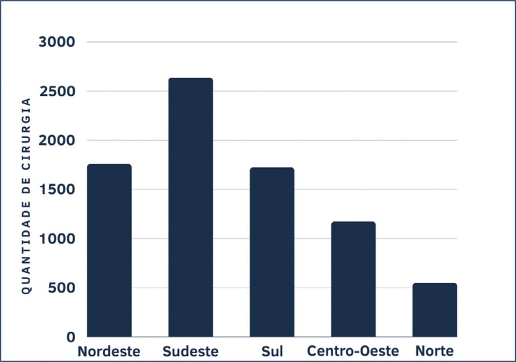 There was equal susceptibility between genders. The Southeast Region leads, followed by the Northeast, Central West, and South in terms of the number of surgeries.